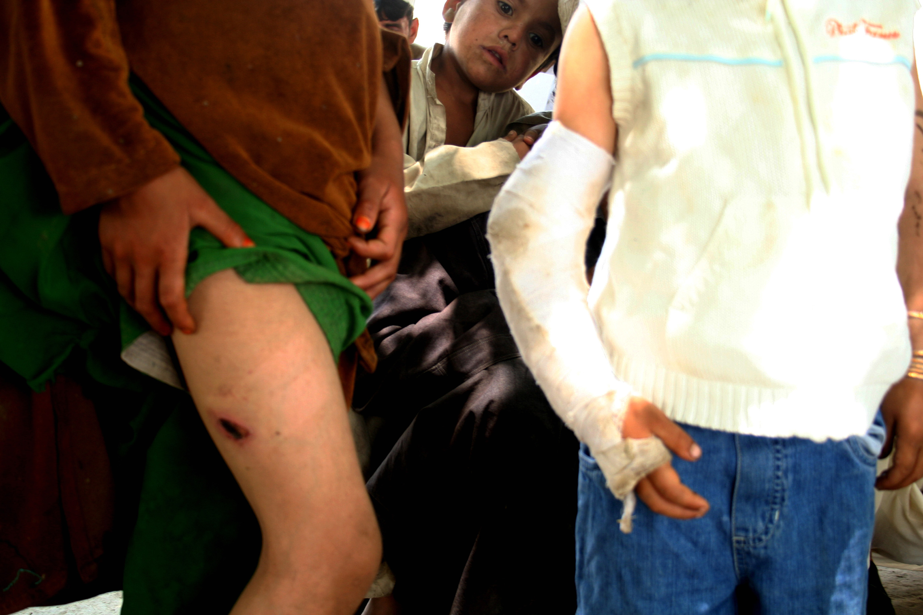 4월29일 미군의 공격으로 6명의 주민이 목숨을 잃은 쉬르겔 마을에선 ‘어린이 부상자’도 쉽게 만날 수 있었다. 한 어린이가 채 아물지 않은 그날의 상처를 내보이고 있다. (Photo by Lee, Yu-Kyung)