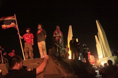 4월10일 발생한 충격적 인명 피해에 전 사회가 충격을 받은 듯 11일 하루 방콕은 조용했다. 그리고 12일 오후, 아피싯 총리 집으로 항의 방문을 다녀온 시위대에게 의외의 소식이 전해졌다. 선거관리위원회가 민주당의 불법 기부금 모집과 관련해 헌법재판소에 민주당 해체 명령을 권고한 것이다. 시위대는 이틀 전 격렬했던 현장에 여전히 남아 있는 탱크 위에 올라 환호했다. 그러나 끝은 아니다. 붉은 셔츠는 그들의 요구사항인 의회 해산이 이루어질 때까지 시위를 이어가겠다는 태도다.