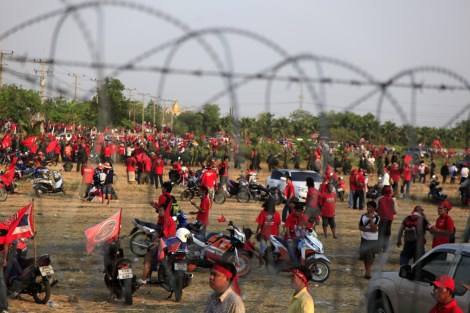 Tens of thousand red shirts protesters were gathering near ‘Thai com’, the satellite provider of its mouth piece ‘P Channel’ in Pathumthani province in a protest against blockade of the channel by the authority. After protest P channel was on air shortly before agains being blacked out by the authority. The blockade of P Channel has directed red shirts protester to extreme anger, which expressed out in violence next day during the deadly clashes with security forces. (© Lee Yu Kyung 2010)
