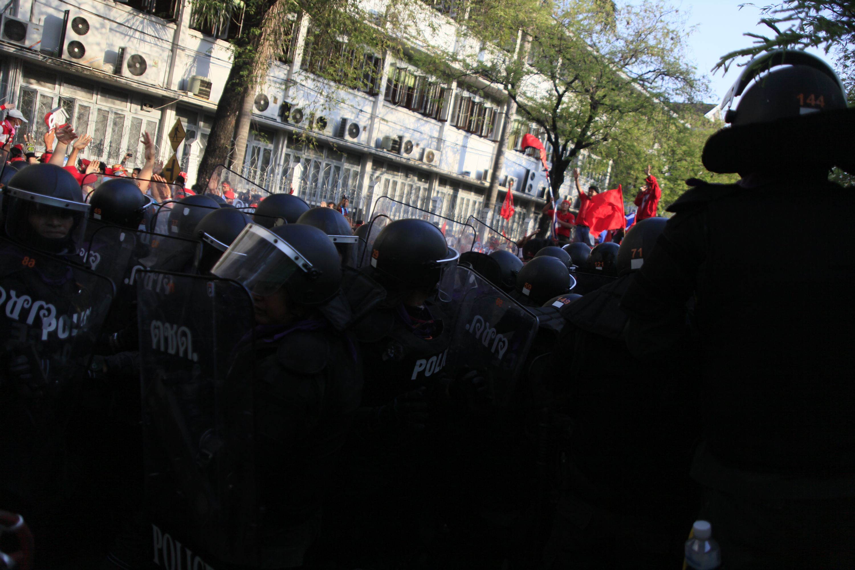 G_Red.crackdowned_100410_0633_SM Published May 10, 2010 at 3000 × 2000 in Photo story : Towards democracy or civil war (1) ← Previous Next → The armed forces confronted with red shirts protesters in Bankok on April 10. (Photo by Lee Yu Kyung)