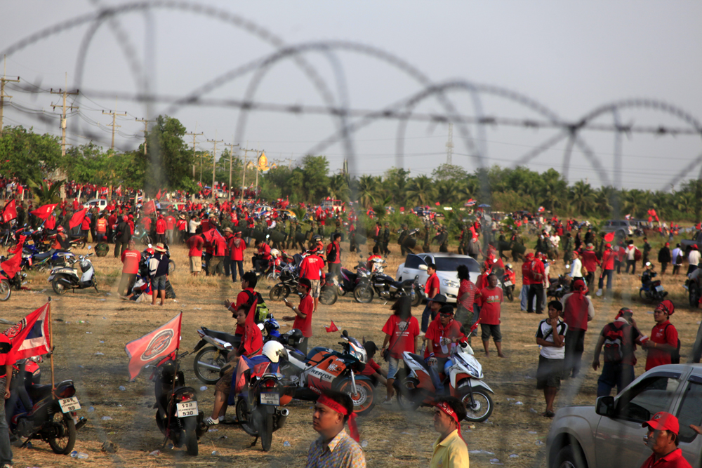 Tens of thousand red shirts protesters were gathering near ‘Thai com’, the satellite provider of its mouth piece ‘P Channel’ in Pathumthani province in a protest against blockade of the channel by the authority. After protest P channel was on air shortly before agains being blacked out by the authority. The blockade of P Channel has directed red shirts protester to extreme anger, which expressed out in violence next day during the deadly clashes with security forces. (Photo by Lee Yu Kyung)
