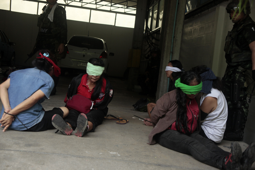G_Red.Uprising_100519_0288_smm Published May 22, 2010 at 1000 × 667 in Where are they? / 어디로 싣고 갔나? ← Previous Next → Red Shirts prisoner while the bloody crackdown by thai armed forces on May 19 (Photo by Lee Yu Kyung) / 5월 19일 타이군의 무력진압과정에서 포로로 잡힌 붉은 셔츠 시위대 (사진 : 이유경)