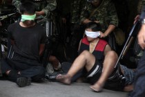 G_Red.Uprising_100519_0432_smm Published May 22, 2010 at 1000 × 667 in Where are they? / 어디로 싣고 갔나? ← Previous Next → Red Shirts prisoner while the bloody crackdown by thai armed forces on May 19 (Photo by Lee Yu Kyung) / 5월 19일 타이군의 무력진압과정에서 포로로 잡힌 붉은 셔츠 시위대 (사진 : 이유경)