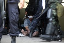 G_Red.Uprising_100519_0444_smm Published May 22, 2010 at 1000 × 667 in Where are they? / 어디로 싣고 갔나? ← Previous Next → Red Shirts prisoner while the bloody crackdown by thai armed forces on May 19 (Photo by Lee Yu Kyung) / 5월 19일 타이군의 무력진압과정에서 포로로 잡힌 붉은 셔츠 시위대 (사진 : 이유경)