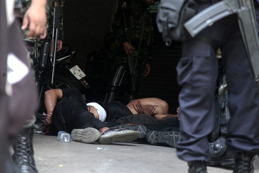 G_Red.Uprising_100519_0447_smm Published May 22, 2010 at 1000 × 667 in Where are they? / 어디로 싣고 갔나? ← Previous Next → Red Shirts prisoner while the bloody crackdown by thai armed forces on May 19 (Photo by Lee Yu Kyung) / 5월 19일 타이군의 무력진압과정에서 포로로 잡힌 붉은 셔츠 시위대 (사진 : 이유경)