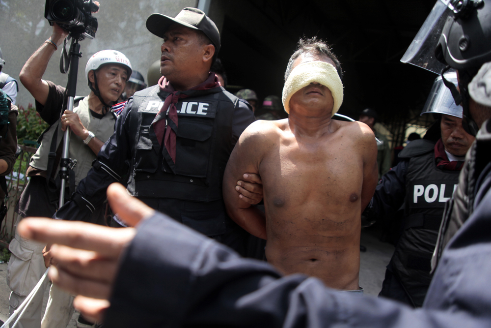 G_Red.Uprising_100519_0476_smm Published May 22, 2010 at 1000 × 667 in Where are they? / 어디로 싣고 갔나? ← Previous Next → Red Shirts prisoner while the bloody crackdown by thai armed forces on May 19 (Photo by Lee Yu Kyung) / 5월 19일 타이군의 무력진압과정에서 포로로 잡힌 붉은 셔츠 시위대 (사진 : 이유경)