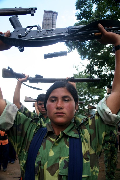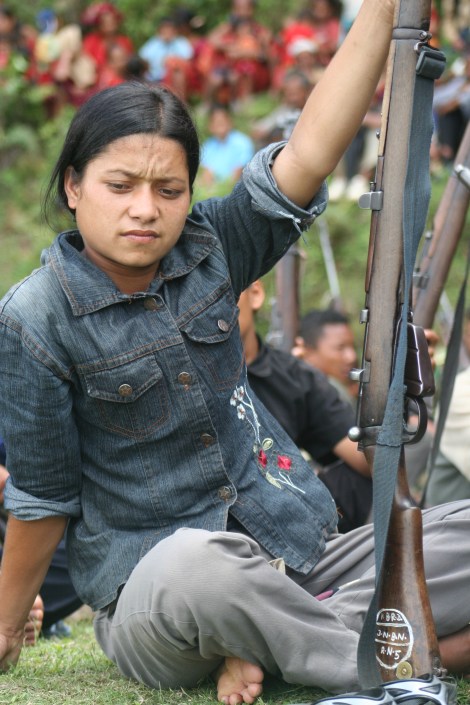 무장투쟁 시절 네팔 공산당 마오이스트. 2006년 봉건왕정을 무너뜨린 제 2의 민중항쟁을 계기로 무장투쟁을 접고 주류 정치권으로 들어와 있다 (© Lee Yu Kyung 2006)