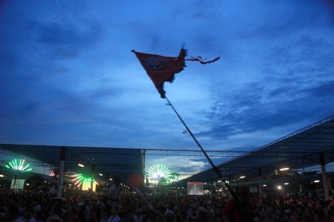 Several thousands Red Shirts gather at Suan Siam (or “Siam Park”) on July 23 to campaign for the prisoned candidate Korkaew Pikulthong. Mr. Korkaew is a candidate for the opposition Pheu Thai party running for sunday’s by-election. He is also one of the core Red Shirts leaders who have been prisoned with charges of terrorism. (© Lee Yu Kyung 2010)