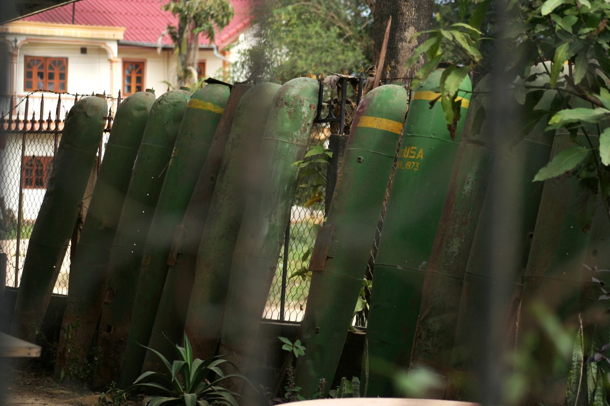 PortraitAsia.UXO(1) Published July 28, 2010 at 3456 × 2304 in 아시아의 얼굴, 아시아의 투쟁 – 집속탄/Portraits of Asia – Legacy of cluster bombs Next → ‘USA’ 마크가 선명히 보이는 폭탄의 잔해들은 라오스 북부 샹쾅 지방 곳곳에서 어렵지 않게 볼 수 있다 (Photo @ Yu K. Lee)