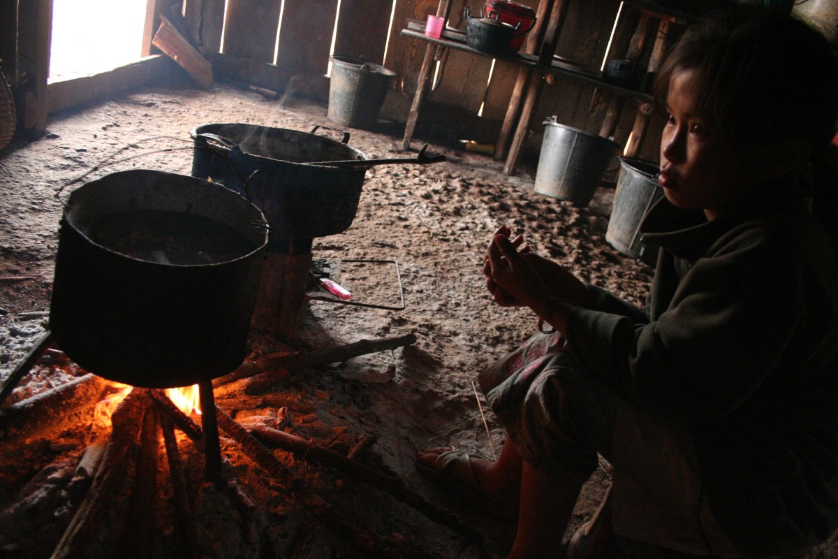 PortraitAsia.UXO(15) Published July 30, 2010 at 3456 × 2304 in 아시아의 얼굴, 아시아의 투쟁 – 집속탄/Portraits of Asia – Legacy of cluster bombs ← Previous Next → 라오스 북부 샹쾅지방 몽족 어린이가 집에서 요리를 하고 있다. CIA는 비밀전쟁당시 몽족을 용병으로 이용하였다. 전쟁후 미국이 ‘버리고 간’ 몽족은 오늘날 미국에 부역한 자신들을 용서하지 않는 라오 공산 정부에 의해 쫓기며 정글에서 비참하게 숨어 지내거나 마을에서도 극심한 빈곤을 면치 못하고 있다. (Photo @ Yu K. Lee)