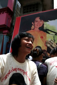 2010년 11월 13일 7년간의 가택연금을 마치고 석방된 아웅산 수치는 여전히 높은 지명도와 인기를 국내외적으로 어김없이 보여주었다. 석방된 아웅산 수치가 버마 민주화 운동의 '상징' 이상의 전술적 노련함을 보일지, 분열된 야권과 영구집권 체제를 공고히 해가는 군부에 어떻게 맞설지 전면 물음표로 남아 있다. 사진은 2008년 6월 19일 가택연금 중이던 아웅산 수치의 63회 생일을 축하하기 위해 NLD 랑군 본부에 모여든 당원들의 모습. (Photo @ Yu K. Lee)