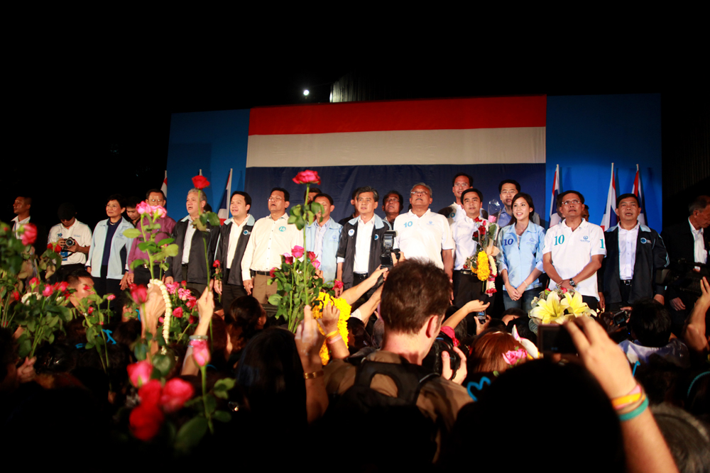 Democrat rally at Ratchprasong appeared to have provocations and slanders out of what happened during the April-May crackdown in 2010, rather than what election campaigning looks like. The party and Abhisit Vejajiva have not admitted at all government responsibility for 92 deaths last year. (Photo by Lee Yu Kyung)