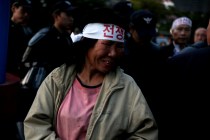 G_5thHopeBus_111008_(35)_SM Published November 3, 2011 at 1000 × 667 in Hope, Not Despair ← Previous Next → A woman participant of the right wing rally has tied a band around her head, in which ‘war’ (on the bus of despair) appeared.