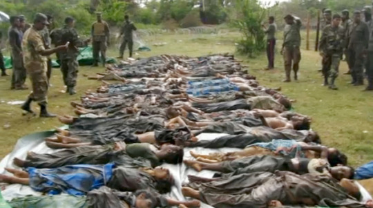 30120903093420_0_20120903163003 Published September 14, 2012 at 540 × 301 in “엄마~” 아이들 비명 위로 폭격, 33만명의 지옥 Next → ▲ 대량 총살 당한 것으로 추정되는 시체들과 정부군. 일부 정부군은 휴대폰 촬영 중이다. 이렇게 촬영된 학살 가담자들의 영상 및 사진은 아이러니하게도 그들이 숨기고자 했던 ‘스리랑카 킬링필드’ 진실 한 토막이 세상에 알려지는 데 기여했다. 화면캡처.
