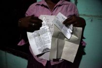 30120903093420(1) Published September 15, 2012 at 520 × 347 in “엄마~” 아이들 비명 위로 폭격, 33만명의 지옥 ← Previous ▲ 스리랑카는 납치와 강제실종으로 악명높다. 특히 소수 타밀족 거주지역인 동북부에서는 군 검문소에서 마지막으로 목격된 이들이 적잖다. 사진 속 여인(35세)의 남편 역시 2007년 북부 한 검문소에서 마지막으로 목격된 후 소식이 없다. 경찰서를 비롯해 여러 인권단체들에 남편 실종사건을 신고하고 받은 신고서가 그녀의 두 손에 한가득이다. ⓒ이유경 / Lee Yu Kyung