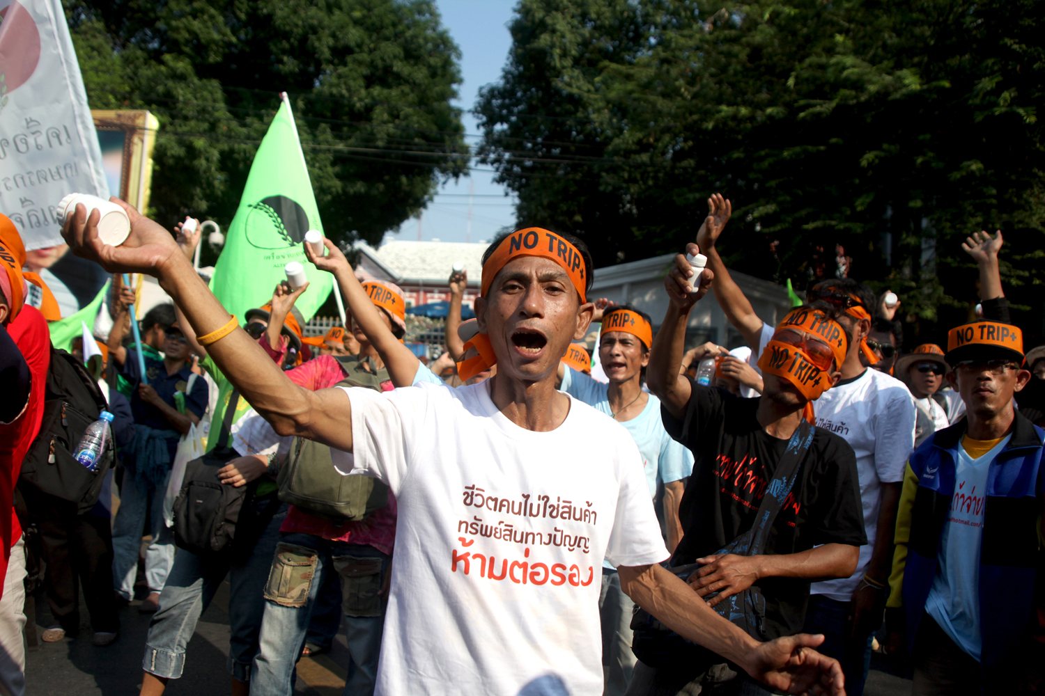 G_FTA_Rally_BKK_130228_04_SM Published March 29, 2013 at 1500 × 1000 in HIV 감염인 목숨 위협하는 FTA ← Previous Next → 타이-EU FTA 협상 개시를 앞두고HIV/AIDS감염인들이 정부청사 앞에서 자신들이 복용하는 에이즈 약통을 흔들며 시위를 벌이고 있다. (Photo by Lee Yu Kyung)