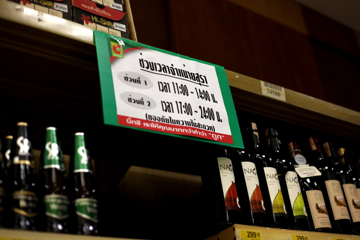 G_Drunken_BKK_130414_001_SM Published April 28, 2013 at 3000 × 2000 in 방콕 ‘물바다’ ← Previous Next → 슈퍼 주류코너에 가면 어디나 붙어있는 안내판. 타이에서는 오전 11-오후 2시, 오후 5시-자정에만 술을 살 수 있다. (Photo © Lee Yu Kyung)