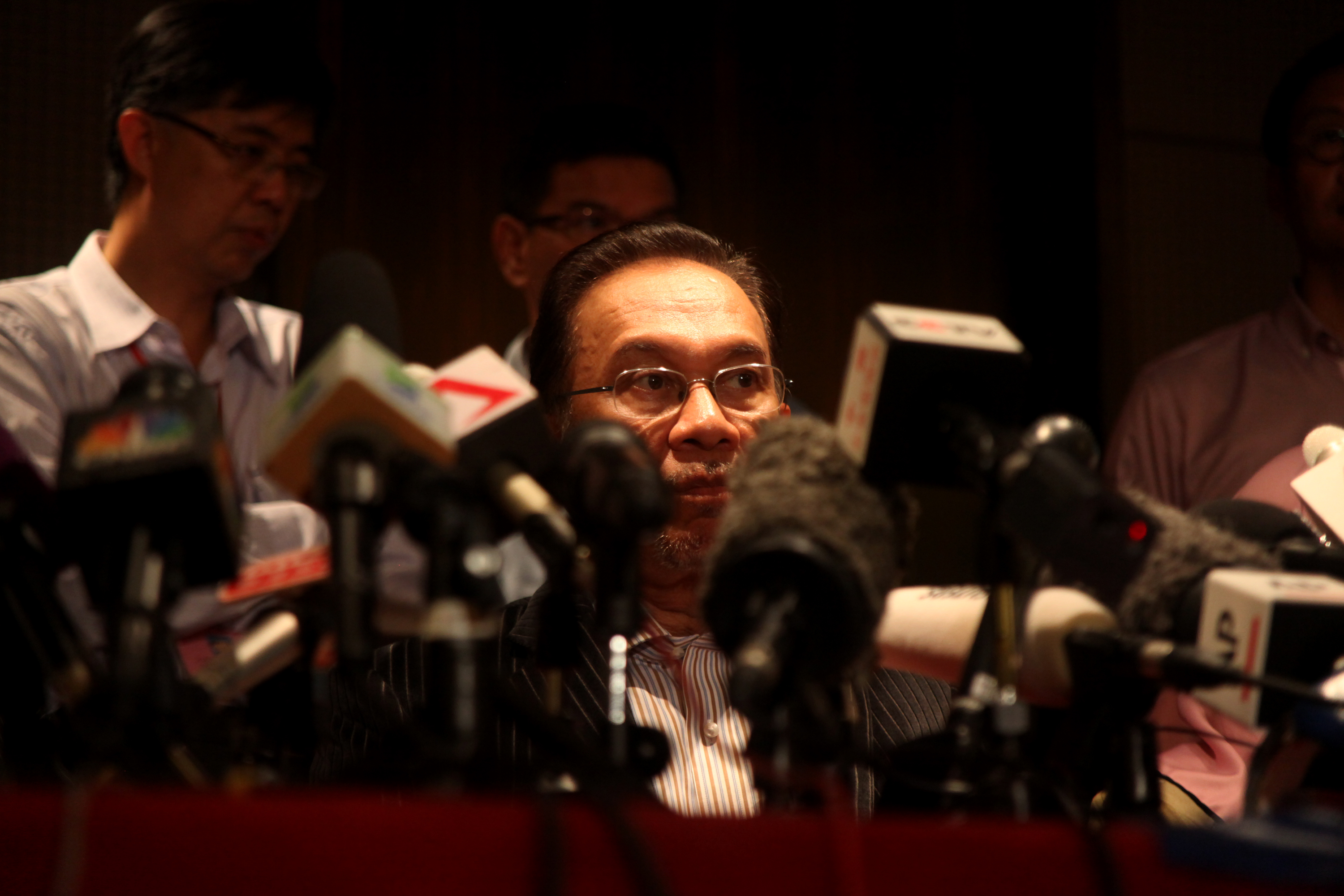 G_Malaysia_GE13_130504_0301_SM Published May 27, 2013 at 3000 × 2000 in 돈잔치 사람잔치 말레이시아 선거 Next → 말레이시아 야권연대 ‘인민동맹’ (PR)을 사실상 이끌고 있는 안와르 이브라힘. 13대 총선이 치뤄진 5월 5일 안와르는 다른 야당 대표들과 함께 자정을 넘겨서야 기자회견장에 나타났다. 여권연정 민족전선 (BN)이 승리한 것으로 윤곽이 드러날 무렵이었기에 피곤하고 쓰라린 표정들이 역력했다. (Photo by Lee Yu Kyung)