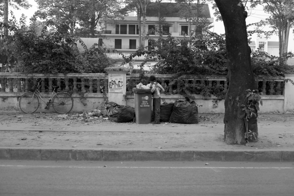 Life Recycled Published June 15, 2013 at 3000 × 2000 in Life Recycling ← Previous Next → Chan Chor Loy (or ‘Loy’), a 12 year old waster picker in Cambodia, crossed the road to searching a huge rubbish bin after a minute he found it. He would have some recycling materials from it. (Photo © Lee Yu Kyung 2013)