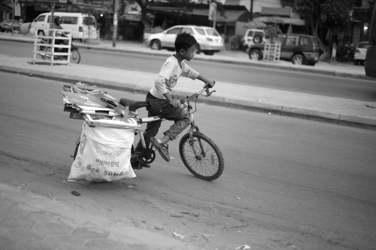 Life Recycled Published June 15, 2013 at 3000 × 2000 in Life Recycling ← Previous Next → Having added more recycling stuffs, Chan Chor Loy (or ‘Loy’), a 12 year old waster picker in Cambodia, is pushing his brake-broken bikes. (Photo © Lee Yu Kyung 2013)