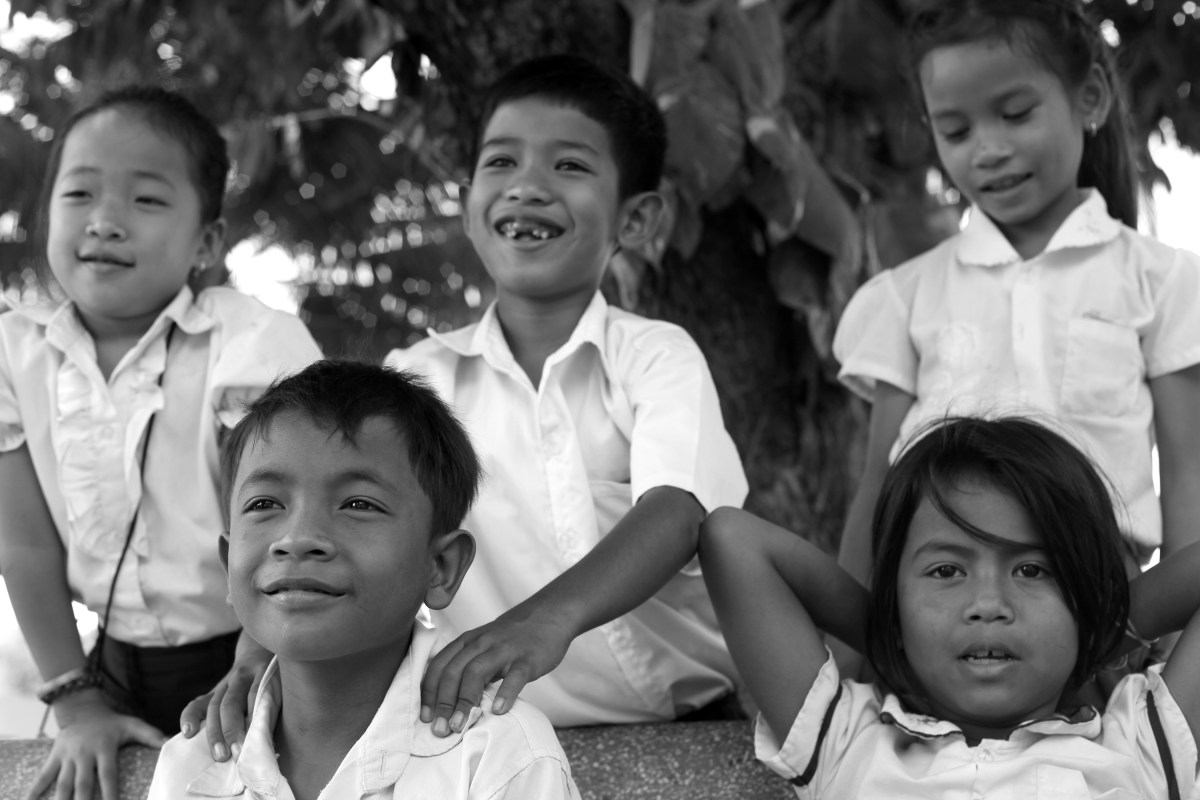 Chan Chao Loy (or ‘Loy’, front left) and his friends sitting in a playground of the school. Loy, a 12 year old waste picker, is attending 4th grade. Some of his class mates also do waste picking for a living. Loy’s daily income, which amounts to 1000 riels (0.25 USD) on average, has been contributing family’s living. (Photo © Lee Yu Kyung 2013