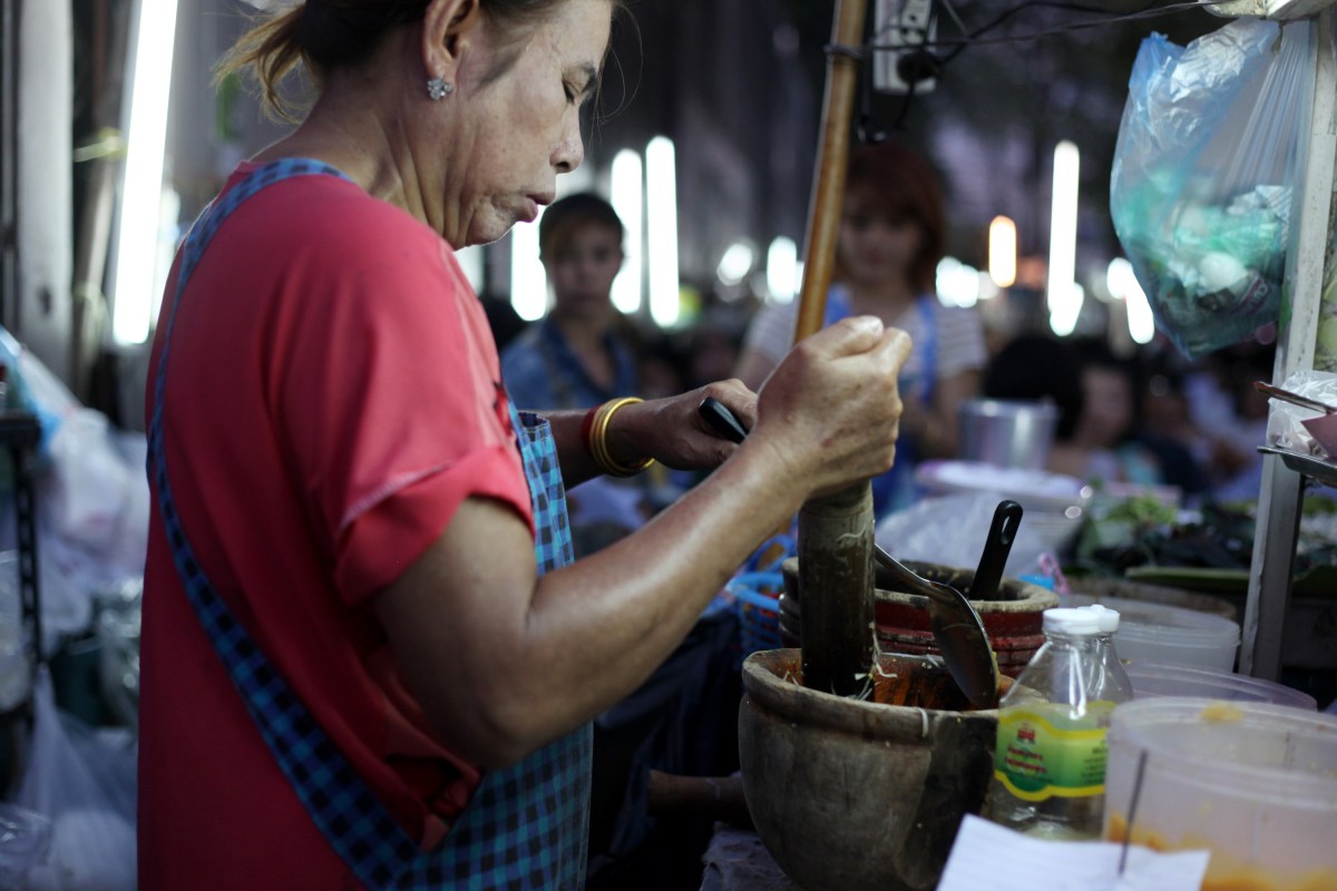 G_Thai_Kitchen_BKKW_3rd_(4)_SM Published June 28, 2013 at 3000 × 2000 in 욕실 세면대를 싱크대로 쓰라고요? ← Previous 방콕 거리식당 주인이 쏭땀 (파파야 살라드)을 만들고 있다. 매콤하고 강한 맛에 입맛 돋구는 인기음식이지만 미원 MSG가 듬뿍 들어간다. 싸고 맛있는 거리음식은 간헐적 외식으로 별미효과를 볼 수 있지만, 끼니로 이어간다면 건강한 식습관 유지에 지장을 줄 수 있다. (Photo © Lee Yu Kyung)