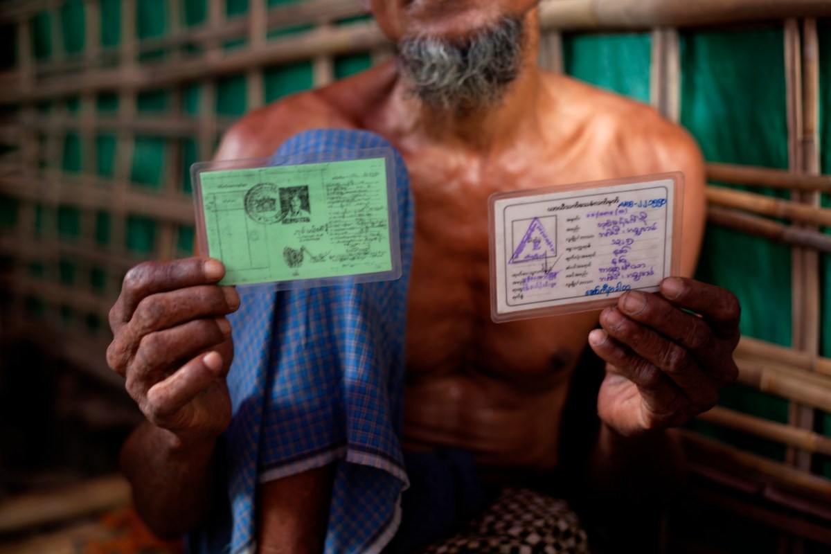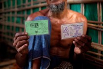G_IDPs_NRC_NSC_Card_130810_001 Published October 2, 2013 at 5616 × 3744 in 인종·종교 차별하는 시민권법 한 로힝자 난민이 82년 시민권법 이전에 발급받았던 국민등록카드 (NRC), 소위 ‘구 그린카드’ (현재 ‘귀화시민’에게도 그린카드가 발급된다) 와 로힝자에게 발급된 화이트 카드 모두를 보관하고 있다. 전자는 로힝자들이 과거 시민이었음을 입증하고, 후자는 선거때 ‘여당찍기’ 동원용이나 이동허가를 신청할때 쓰인다. (© Lee Yu Kyung)