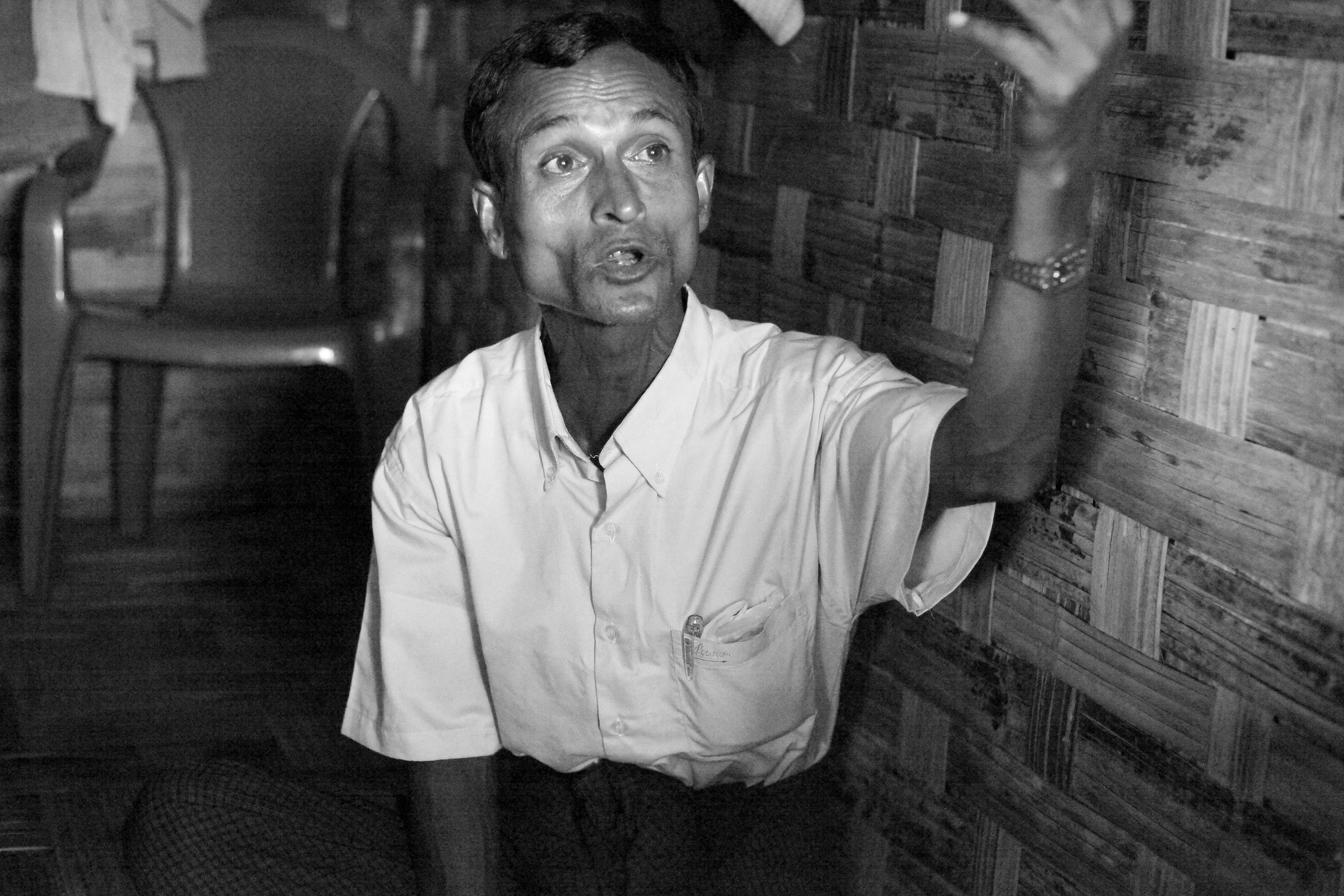 18_G_IDPs_Injured_130810_077_SM Published October 13, 2013 at 3000 × 2000 in 웰컴 투 ‘아파르트 헤이트’ ← Previous Next → Rohingya IDP Abu Sidique (44) said he voted for ‘Than Shwe party’ in the last election in 2010 as the party had promised Rohingya to grant them citizenship. Abu felt betrayed. ‘’I will never vote for that party’’ he said. (Photo © Lee Yu Kyung 2013)