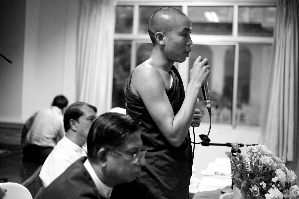 Ashin Jinay, the young monk from Mandalay, was making harmonious speech at the press conference organized by Muslims organization in Rangoon. This is an act needing braveness in Burma’s context, as the country’s Buddhist community has been overwhelmed by anti-Muslims sentiment and violence, otherwise silenced. (Photo © Lee Yu Kyung 2013)