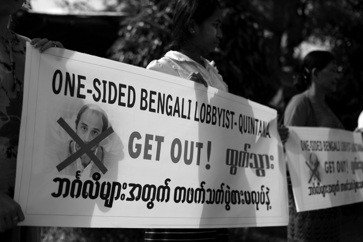 G_Anti_Quintana_Protest_130812_0057_SM Published September 3, 2014 at 3000 × 2000 in Burma’s Apartheid ← Previous Next → A Rakhine Buddhist protests against Tomas Quintana, the UN Human rights envoy to Burma. (Photo © Lee Yu Kyung 2013)