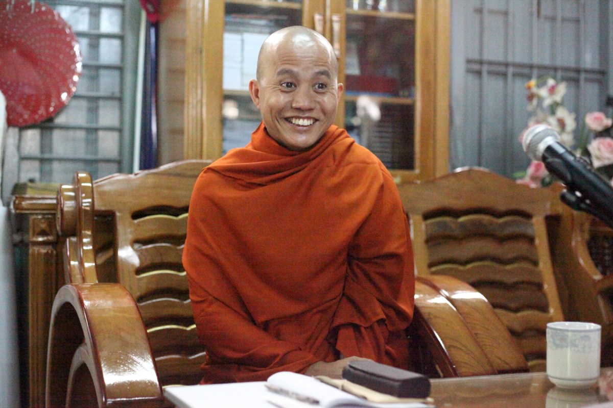 G_U_Wirathu_130823_011_SM Published October 20, 2013 at 3000 × 2000 in “무슬림이 촉발한 분노가 살상극 불렀다” Next → 우 위라뚜는 반 무슬림 보이콧을 벌이는 969운동의 대표적 승려다. 2003년 촉세 지방에서 종교 폭동을 부추긴 혐의로 수감생활 중 지난 해 초 대통령 특사로 석방되었다. 그는 ‘’민코나잉(88세대)과 같이 석방되었다’’는 점을 강조한다. 현재 만달레이 마수에인 사원의 주지승이다. (Photo © Lee Yu Kyung 2013)