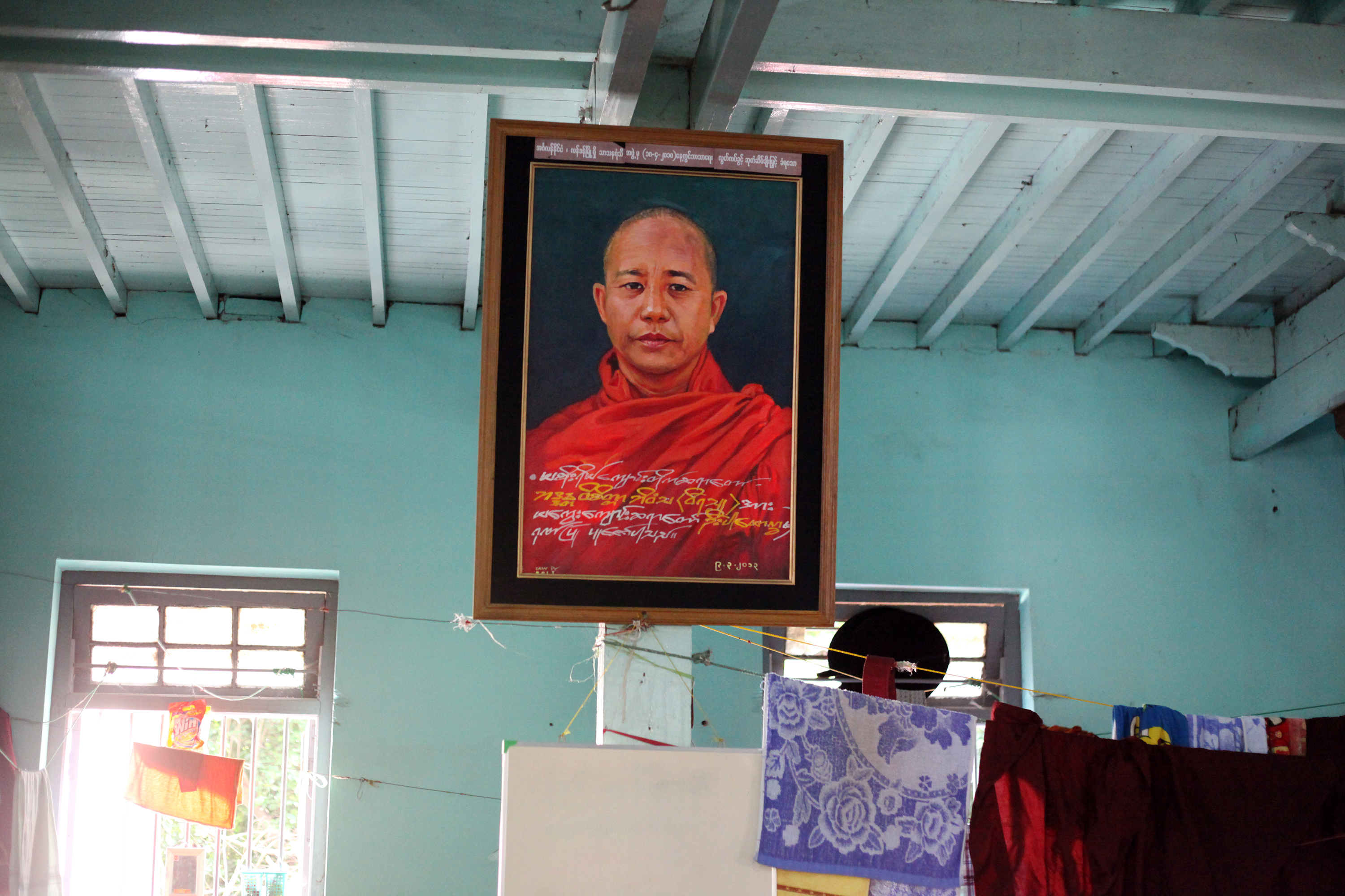 G_U_Wirathu_130823_017_SM Published October 20, 2013 at 3000 × 2000 in “무슬림이 촉발한 분노가 살상극 불렀다” ← Previous 반 무슬림 보이콧 969운동의 상징으로 군림하는 승려 우 위라뚜의 거처 안 팎에는 그의 사진, 초상화등이 많이 걸려 있다. (Photo © Lee Yu Kyung 2013)
