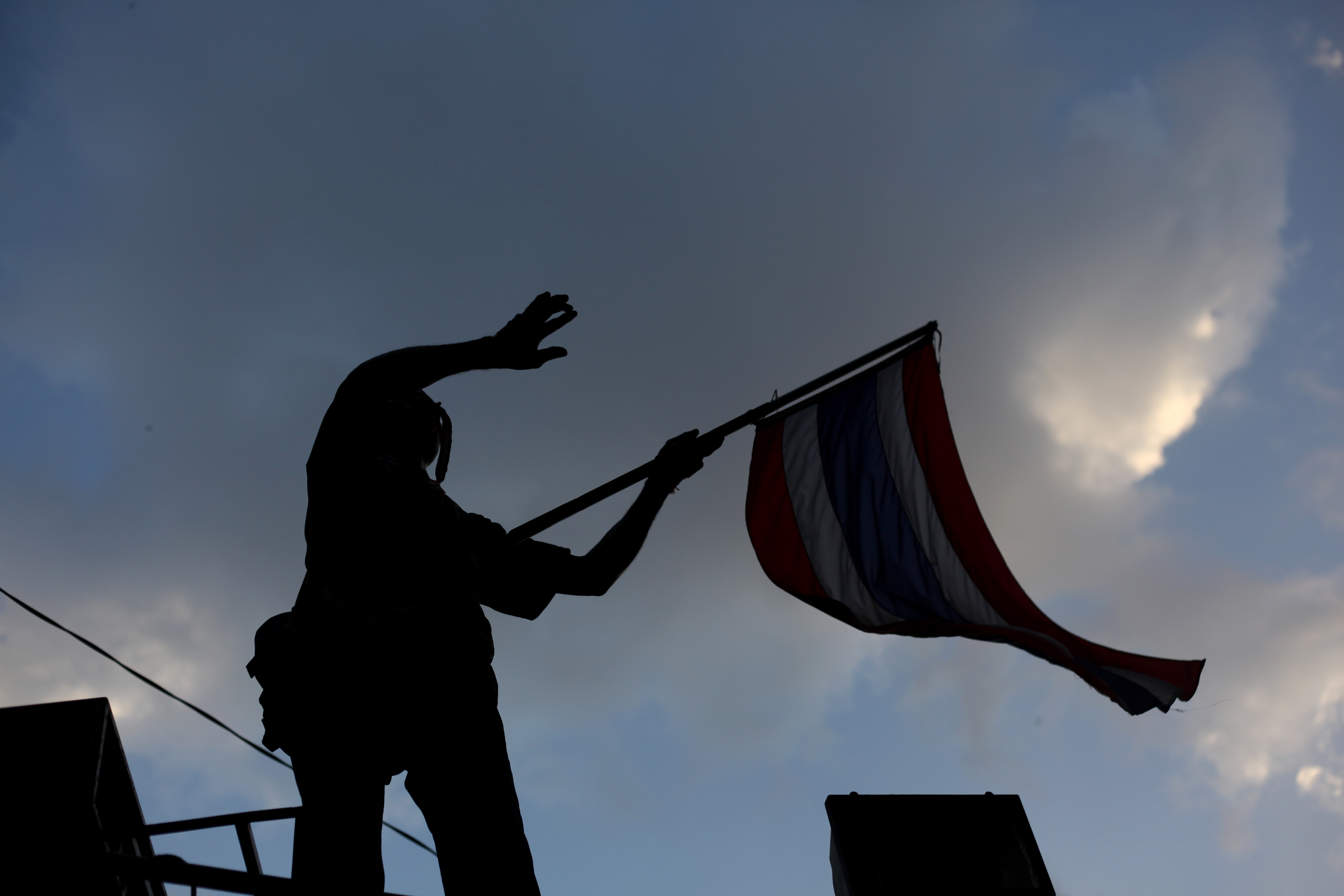 G_RoyalistRevolt_Thai_131203_0590_SM Published December 7, 2013 at 3000 × 2000 in 타이 정치분쟁은 ‘자본 대리전’인가? 애초 사면 법안 반대로 촉발된 타이 반정부시위는 그동안 흩어져있던 왕정주의자들을 결집시켰다. 그러나 시간이 흐를수록 주장과 시위전술이 과격해지면서 참여인원은 줄고 있다. 시위대를 이끌고 있는 수텝 통수반 전 부총리는 의회해산이나 조기 총선 등 선거민주주의를 전혀 받아들이지 않겠다는 입장이며 국왕이 임명하는 총리와 임명직으로 구성된 ‘인민위원회’(People’s Council)를 주장하고 있다. (Photo © Lee Yu Kyung 2013)