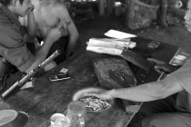 G_KIA_Frontline_131111_0373_SM Published September 6, 2014 at 3000 × 2000 in Peace Process, lost in the Jungle (B/W) ← Previous Next → KIA soldiers at the Lawayang frontline, 8 km off from Lakiza, prepare lunch. (Photo © Lee Yu Kyung)