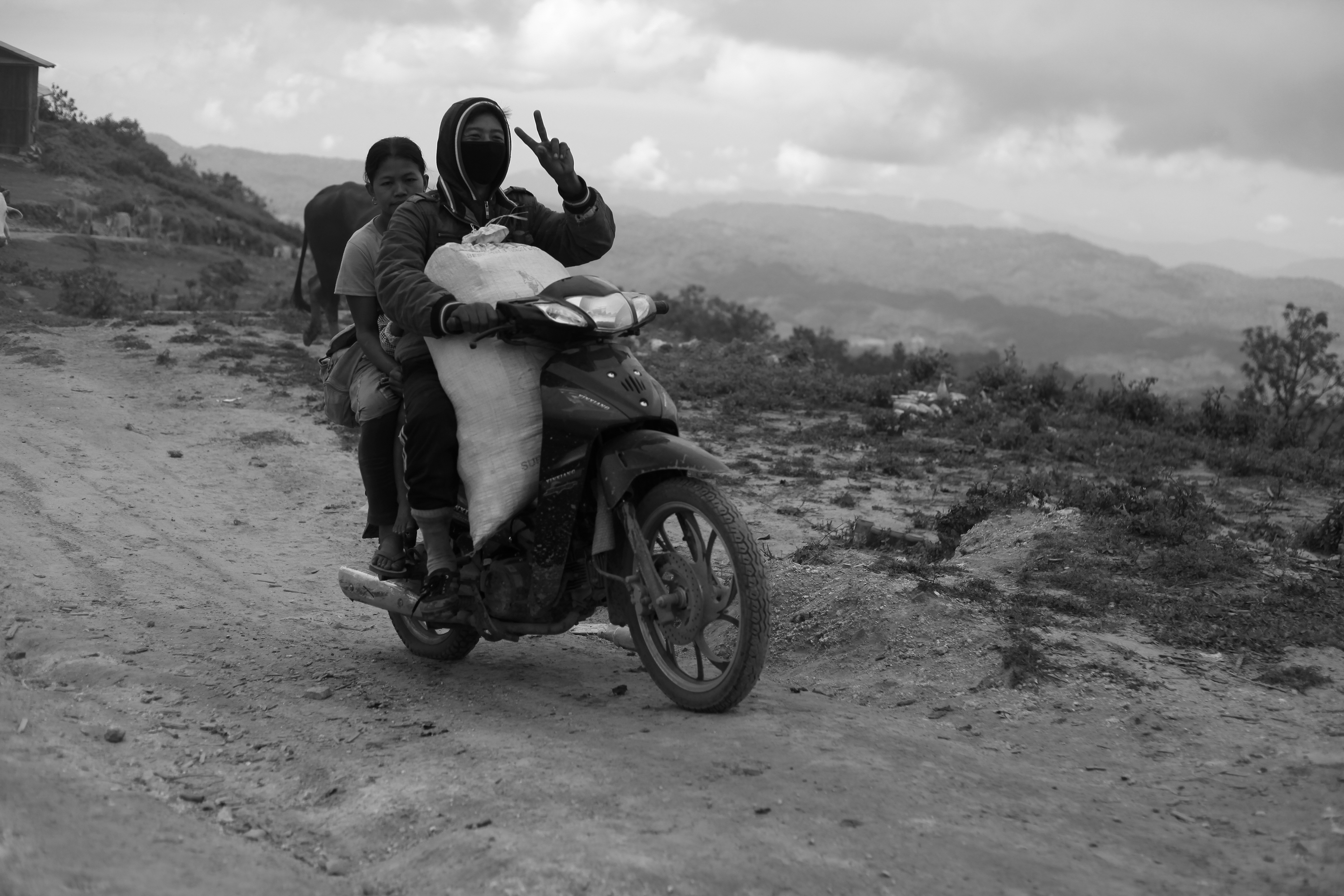 Thousands of Kachin IDPs were fleeing Nam Lim Pa, Mansi township in various means, including motorcycle as government troops have intruded into their village and IDPs on November 16. Subsequently heavy fighting between KIA and government troops broke out around 7am on November 17. (Photo © Lee Yu Kyung 2013)