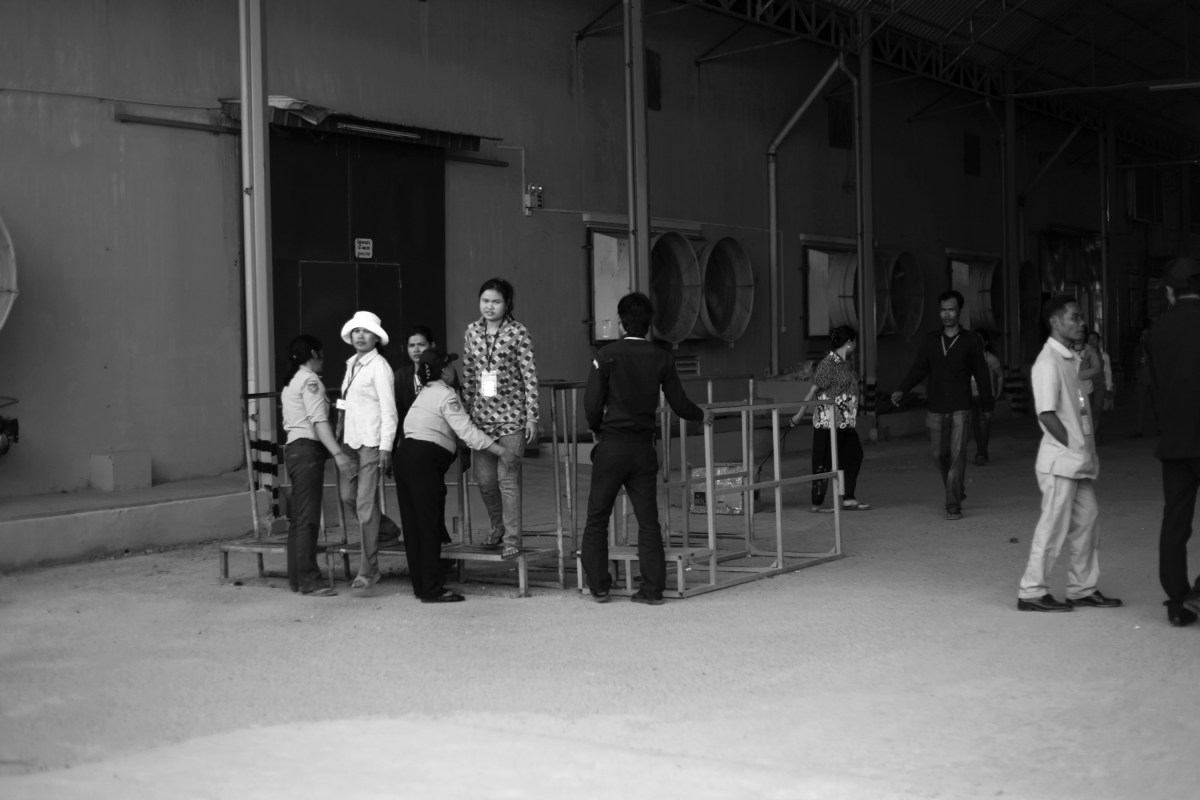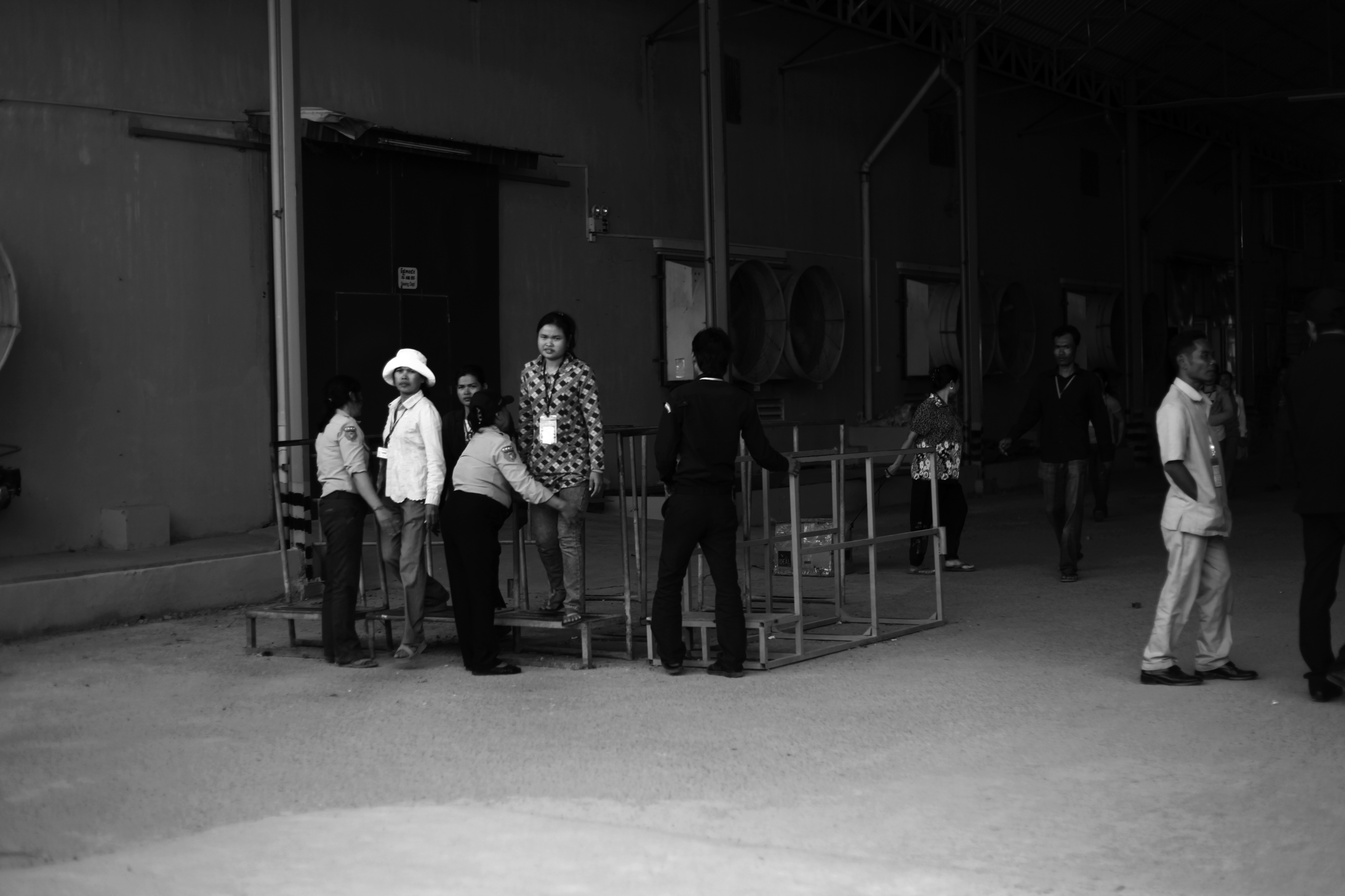 G_Cambodia_Strike_140114_0123_SM Published February 1, 2014 at 3000 × 2000 in 기업의 앙탈에 총알이 발사되었다 ← Previous 프놈펜 남서쪽 카나디아 공단내 한 공장. 경비원들이 퇴근하는 노동자들의 몸수색을 하고 있다. (Photo © Lee Yu Kyung 2013)