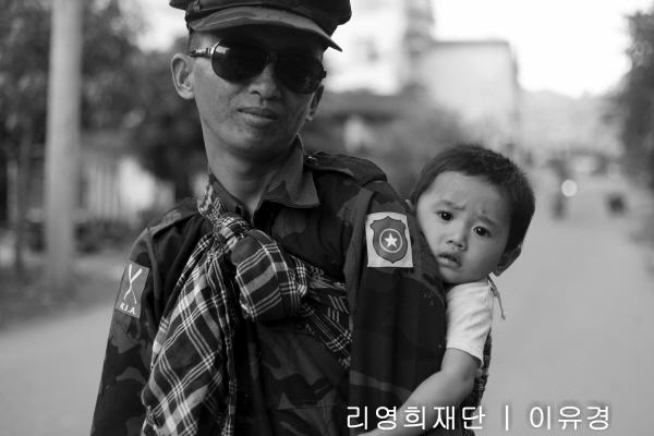 7c262c0953d128aa4a0a4cdc7bc24d04_WyivihNkiulrtb3dp5ZUjoSBmS Published April 16, 2014 at 600 × 400 in 카친의 평화 정글에서 길을 잃다 ← Previous Next → 카친 병사가 아이를 보고 있다. 17년 휴전이 깨진 이래 재개된 전쟁으로 지난 2년여간 카친반군의 젊은 병사들은 교전에 집중 노출되고 있다. (Photo © Lee Yu Kyung)