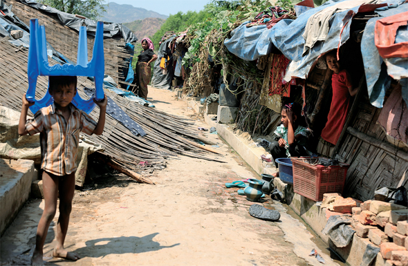 139951724924_20140509 Published June 12, 2014 at 590 × 385 in 난민 구호가 잘되면 더 밀려온다? Next → 방글라데시 미등록 로힝야 난민캠프. 당국의 비협조로 한 비정부기구(NGO)만이 제한적으로 구호활동을 펴고 있으며, 식량 구호는 전혀 없다. 대부분의 주거지는 대나무와 짚을 엉성하게 엮은 수준으로 매우 촘촘히 붙어 있고 그중 몇몇은 ‘주저앉은’ 모양새다. 그동안 기자가 접해본 수많은 난민캠프 중 가장 열악한 환경이라 해도 과언이 아니다. (Photo © Lee Yu Kyung)