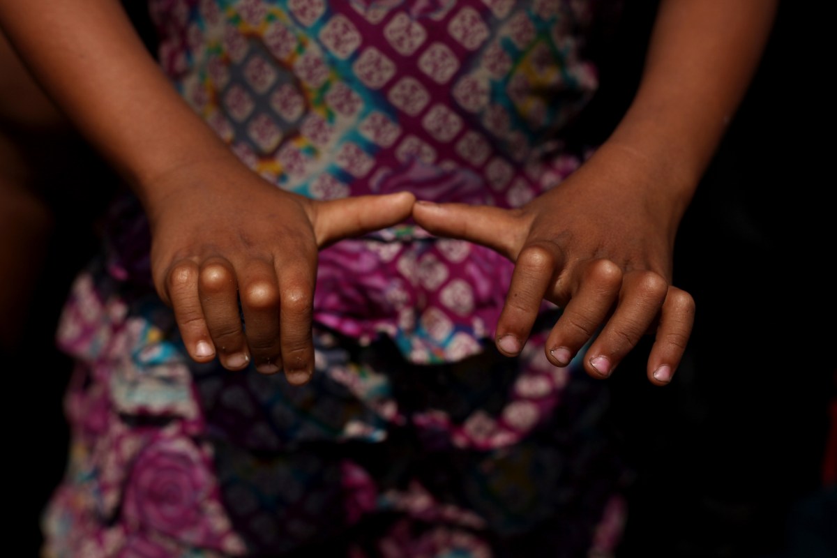 G_Unregistered_140319_0126_SM Published June 12, 2014 at 3000 × 2000 in 난민 구호가 잘되면 더 밀려온다? ← Previous Next → 방글라데시 미등록 로힝야 캠프에 사는 한 어린이가 굽은 손가락을 보이고 있다. 흔한 설사병에서부터 이 아이처럼 원인을 잘 알 수 없는 질병과 증세까지 구호활동이 제한된 캠프 난민들의 건강 상태는 열악했다. (Photo © Lee Yu Kyung)