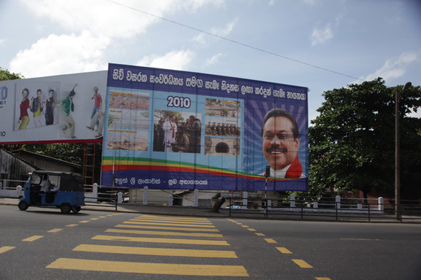 142183143052_20150122 Published February 14, 2015 at 590 × 393 in 점쟁이 말 믿은 대통령의 도박 그리고.. Next → 2010년 조기대선에서 마힌다 라자팍사 대통령은 전년도에 종식된 전쟁의 영웅이미지를 적극 활용하여 재선에 성공했다. 그는 임기를2년 남겨두고 3선을 노리며 치른 이번 조기 대선에서도 전쟁과 안티테러리즘 캠페인으로 호소했다. 그러나 강도높은 부패와 가문독재 정치에 지친 측근들마저 등을 돌리면서 성공하지 못했다. (© Lee Yu Kyung 2010)