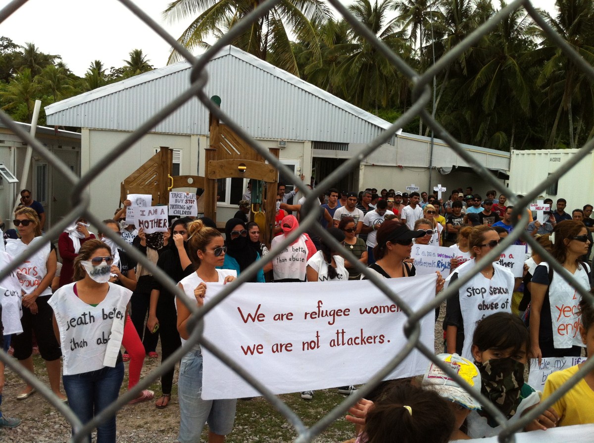 나우루난민감호소시위_PhotoCourtesyAsylumSeeker_IMG_3049 Published May 30, 2015 at 2592 × 1936 in “너희 나라로 돌아가라고 지옥을 만들어놓았다” ← Previous Next → 나우루 난민감호소 난민들이 인도주의적 난민정책을 호소하고 있다. 오스트레일리아 정부는 지난 10여년간 주변 빈국들에 경제적 지원을 미끼로 보호가 절실한 난민신청자들을 감호소에 방치해놓았다. ‘오프쇼어 감호소’ 정책은 감호소가 있는 나우루 그리고 파푸아뉴기니에 현지인과 난민들간에 갈등의 씨앗을 뿌려 놓았다. (© Peter Boyle)