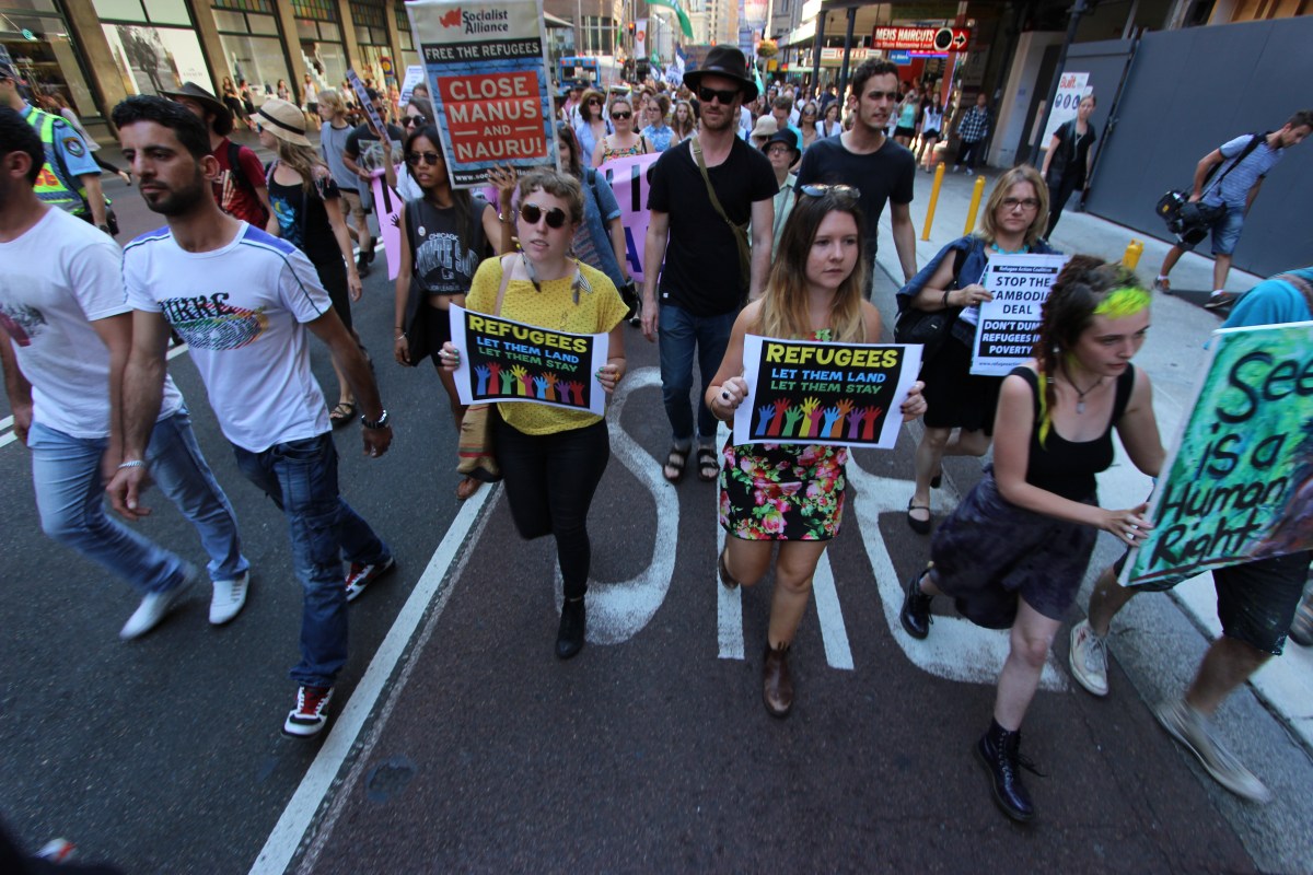 Photo_by_Peter Boyle_IMG_5562 Published May 30, 2015 at 5184 × 3456 in “너희 나라로 돌아가라고 지옥을 만들어놓았다” ← Previous Next → 시드니 시민들이 보트난민 정박 허용과 나우루, 마누스 난민 감호소 폐쇄를 요구하며 시위를 벌이고 있다. (© Peter Boyle)
