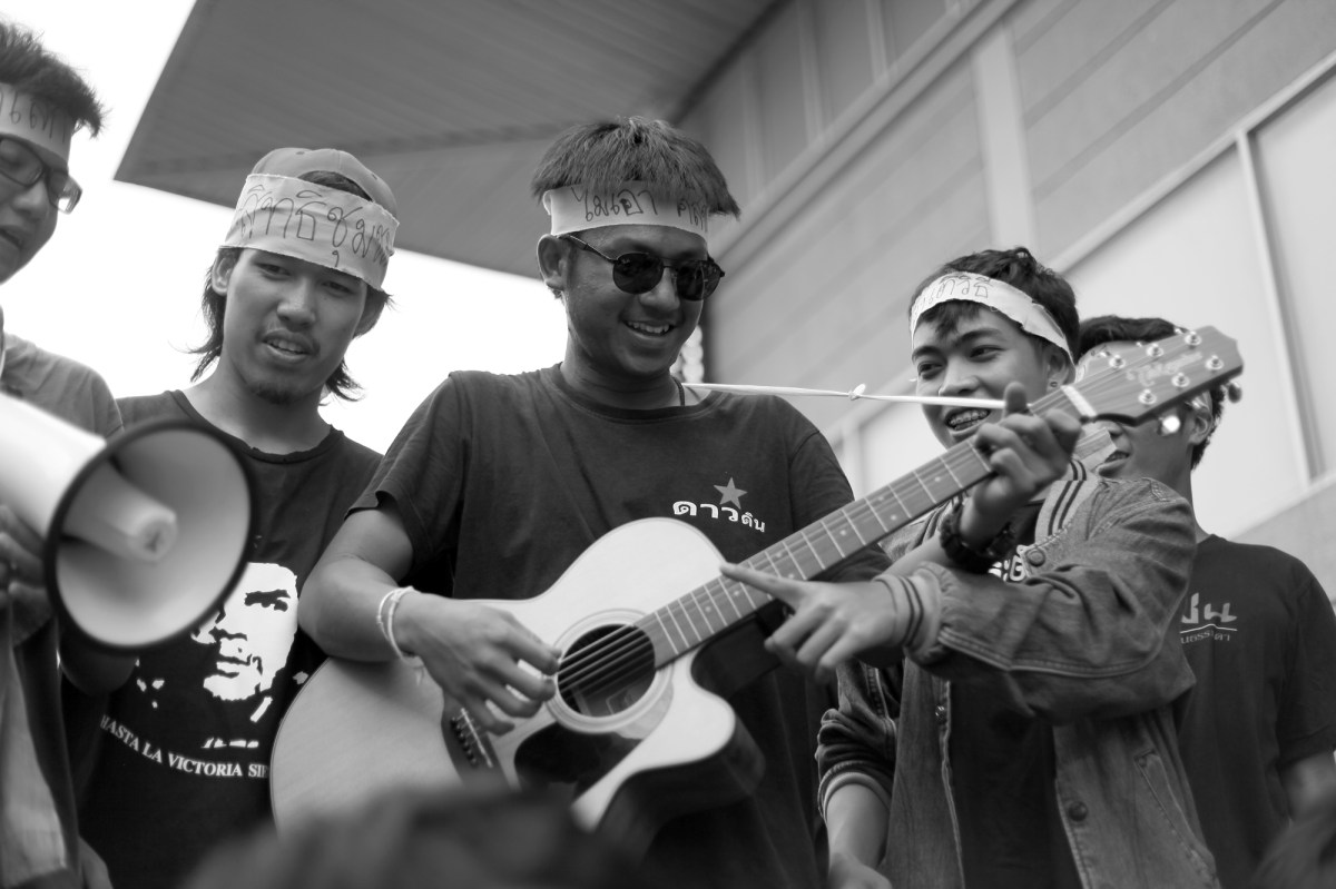 New Democracy Movement Declared_DaoDin_BKK_Thailand_2015 Published June 28, 2015 at 2000 × 1333 in New Democracy Movement Declared, June 24 2015 ← Previous Next → Anti-coup activists of Dao Din group from Khon Kaen university were singing at the stage near Pathumwan Police station in Bangkok June 24. They were arrested two days later along with another 7 activists from Bangkok (© Lee Yu Kyung 2015)