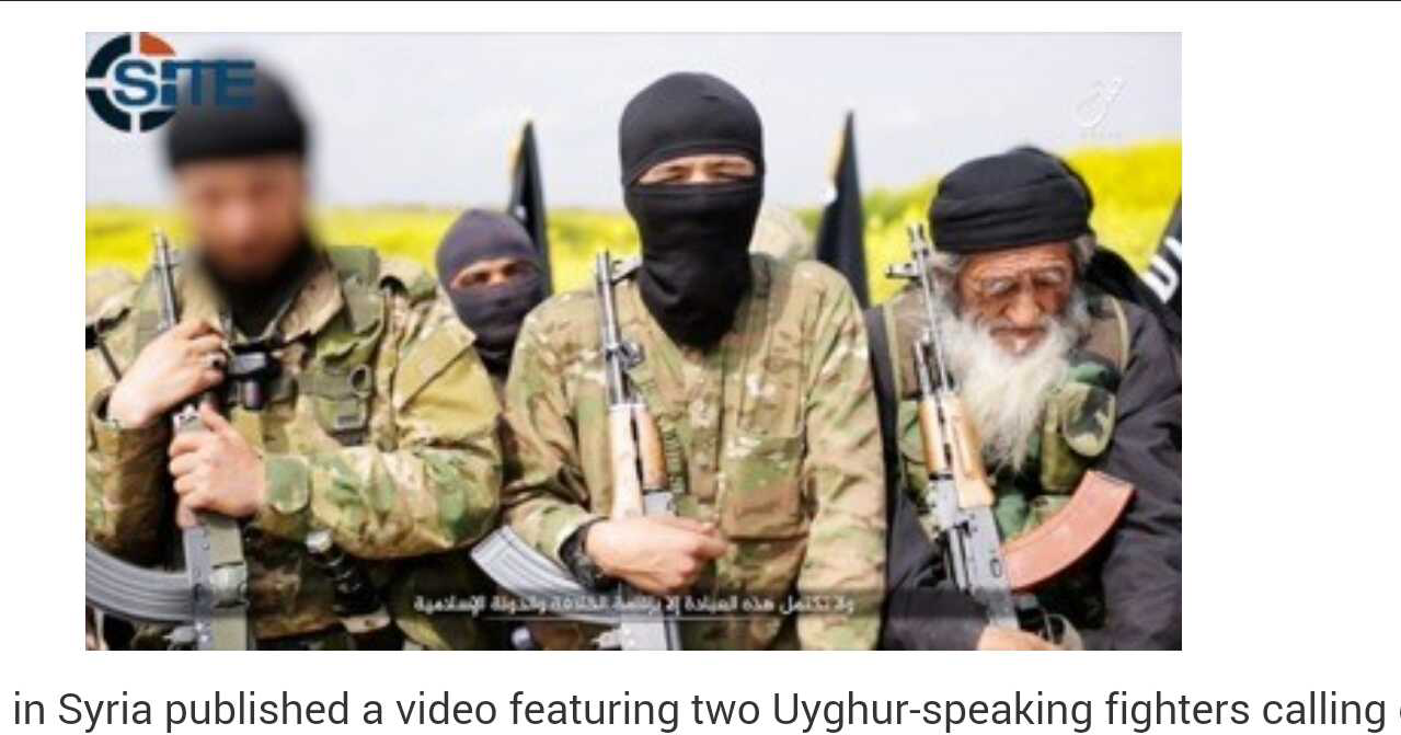 2015-07-30 03.29.19 Published August 7, 2015 at 1279 × 671 in 위구르 지하디스트는 얼마나 위험한가? 중국 정부는 “강제송환된 백여명이 이라크와 시리아로가는길이었다” 고 말해 IS 변수를 적극 활용하고 있다. 이런 가운데 ‘지하드 뉴스” 를 집중 분석하는 미국소재 ‘SITE Intel Group’ 가 최근 IS가 위구르족선동하는 비디오를 올렸다고 밝혔다. (사진 : SITE Intel Group 사이트 캡쳐)