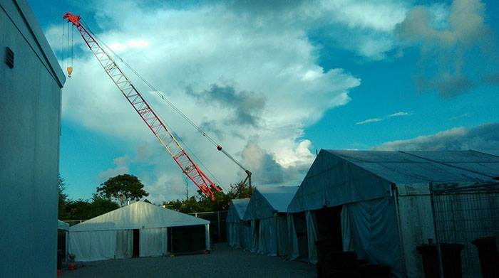 12274209_911688818868588_4789916607068358046_n Published November 27, 2015 at 700 × 391 in 나우루 호주 난민감호소, “아이들을 도와달라” 고공시위 Next → 라자 케스틴자드(Reza Khestinzhad)가 9시간 동안 고공농성을 벌인 나우루 크레인 (Photo courtesy : Refugee Action Coalition)