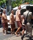 FacebookUser8_April27_Arrested_Photo_by_Sa-nguan Khumrungroj_01 Published July 13, 2016 at 790 × 960 in 납치, 강제실종, 의문사..타이군정 2년 ‘출구’가 안보인다 Next → 지난 4월 27일 이른 아침 곳곳에서 동시다발로 체포된 10명 중 8명에게 선동죄가 적용됐다. 그 8명 중 2명은 왕실 모독법 위반까지 겹쳤다. 페이스북 포스팅과 댓글로 잡혀간 이들은 ‘페이스북유저8’이라 부른다. 5월 10일 군사법원으로 호송되고 있다. (© Sa-nguan Khumrungroj)