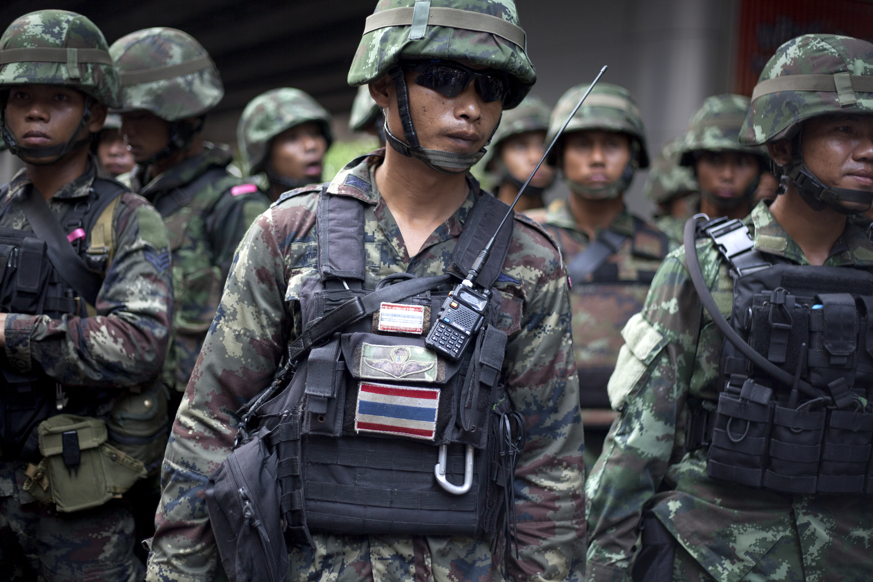 G_Military_at_CoupProtest_140525_0280_SM Published July 13, 2016 at 3000 × 2000 in 납치, 강제실종, 의문사..타이군정 2년 ‘출구’가 안보인다 ← Previous 2년전 쿠테타 직후 쿠테타를 반대하는 시민들의 시위가 이어지자 군인들이 거리에 배치됐다. 시위는 일주일 내외 이어지다 유혈충돌을 우려하며 사그라들었고 그날 이후 지난 2년간 타이사회는 군사독재국가체제를 점점 더 공고히 해가고 있다. (© Lee Yu Kyung)