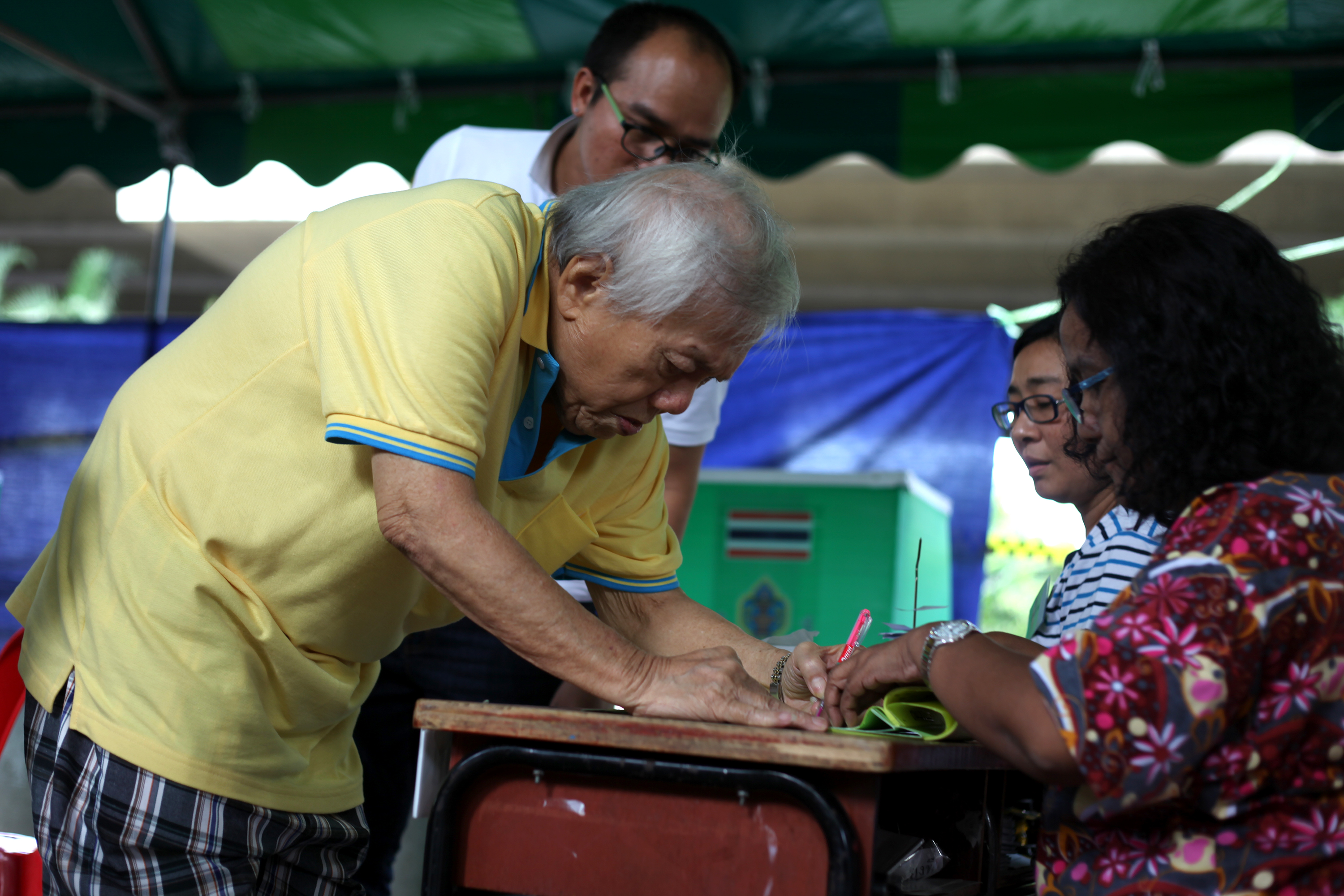 G_Thai_20th_Constitution_Referendum_160807_0905_SM Published September 2, 2016 at 3000 × 2000 in “선거 없이 ‘군인 정당’ 들어서는 것” ← Previous Next → 8월 7일 국민투표일 한산한 투표소에는 나이든 유권자들의 모습이 많이 눈에 띄었다. (© Lee Yu Kyung)